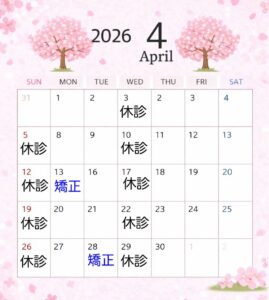 矯正日は13日(月)、28日(火)となります。