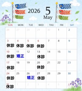 クリア歯科なんば院の5月の営業スケジュールにつきましてご案内いたします。